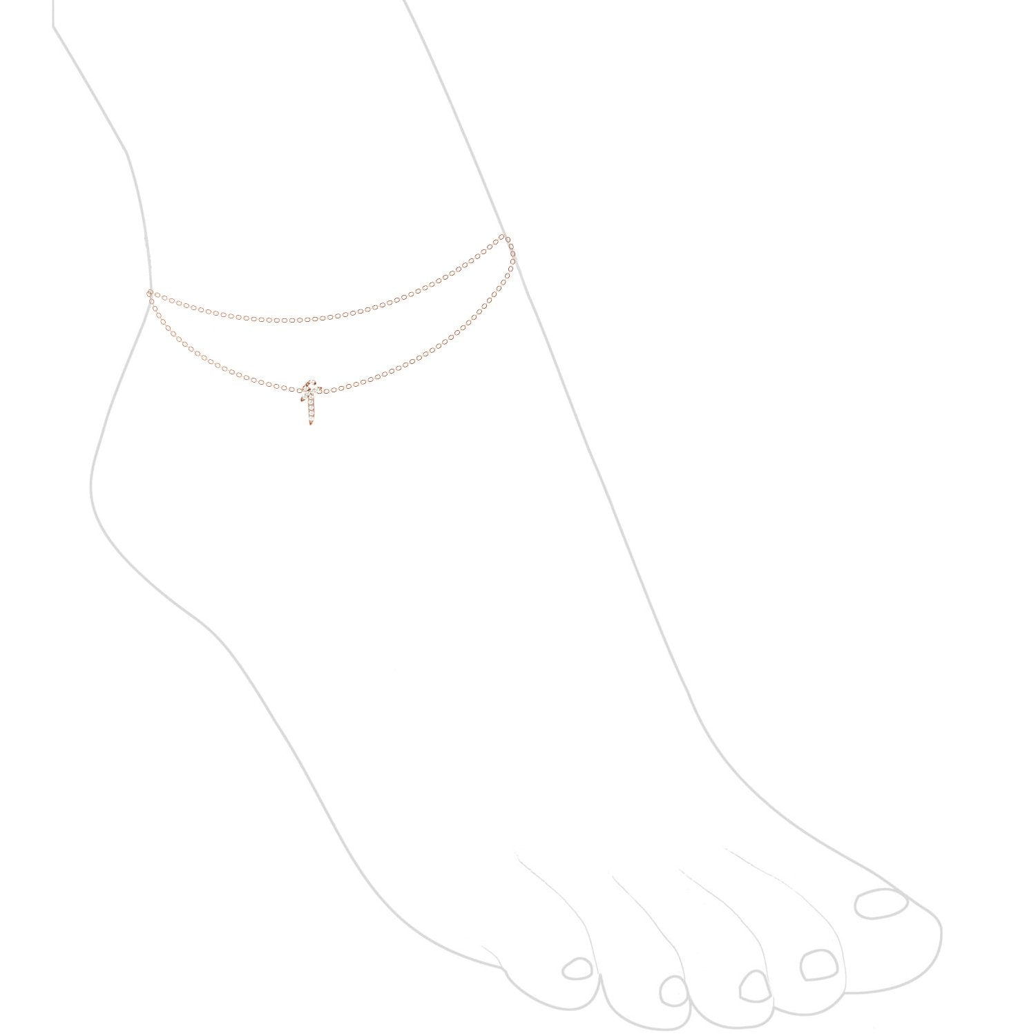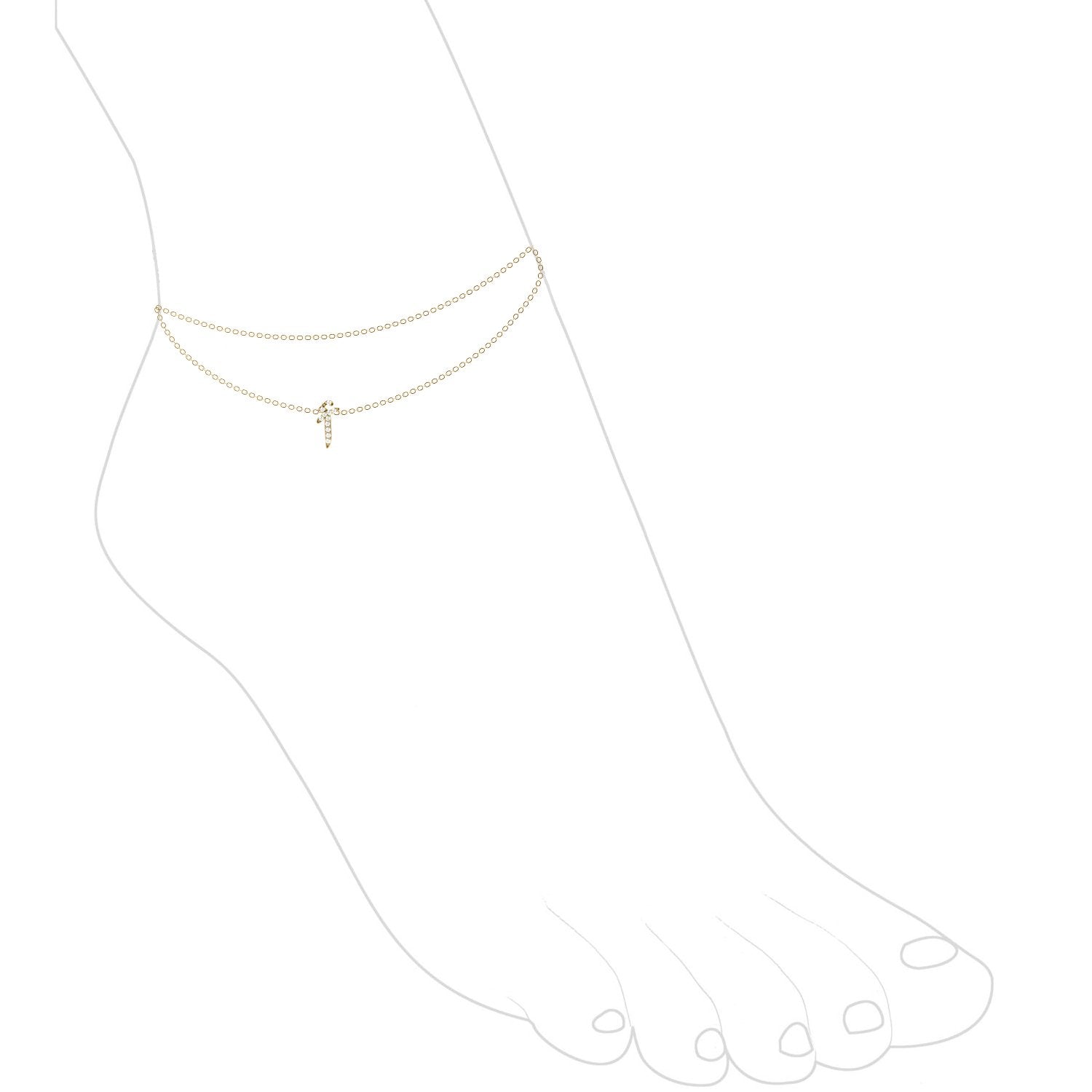 صممي حرفك أو حرف أحبائك من الذهب و الالماس من مجوهرات باللغة العربية المصممة بكل دقة و رقي لكي ترتديها بشكل يومي مع بقية قطع مجوهراتك، هذا الخلخال عبارة عن سلسالين، السلسال الأول يحوي 5 حبات الماس، بينما يتدلى من السلسال الثاني حرفك العربي المرصع بالالماس