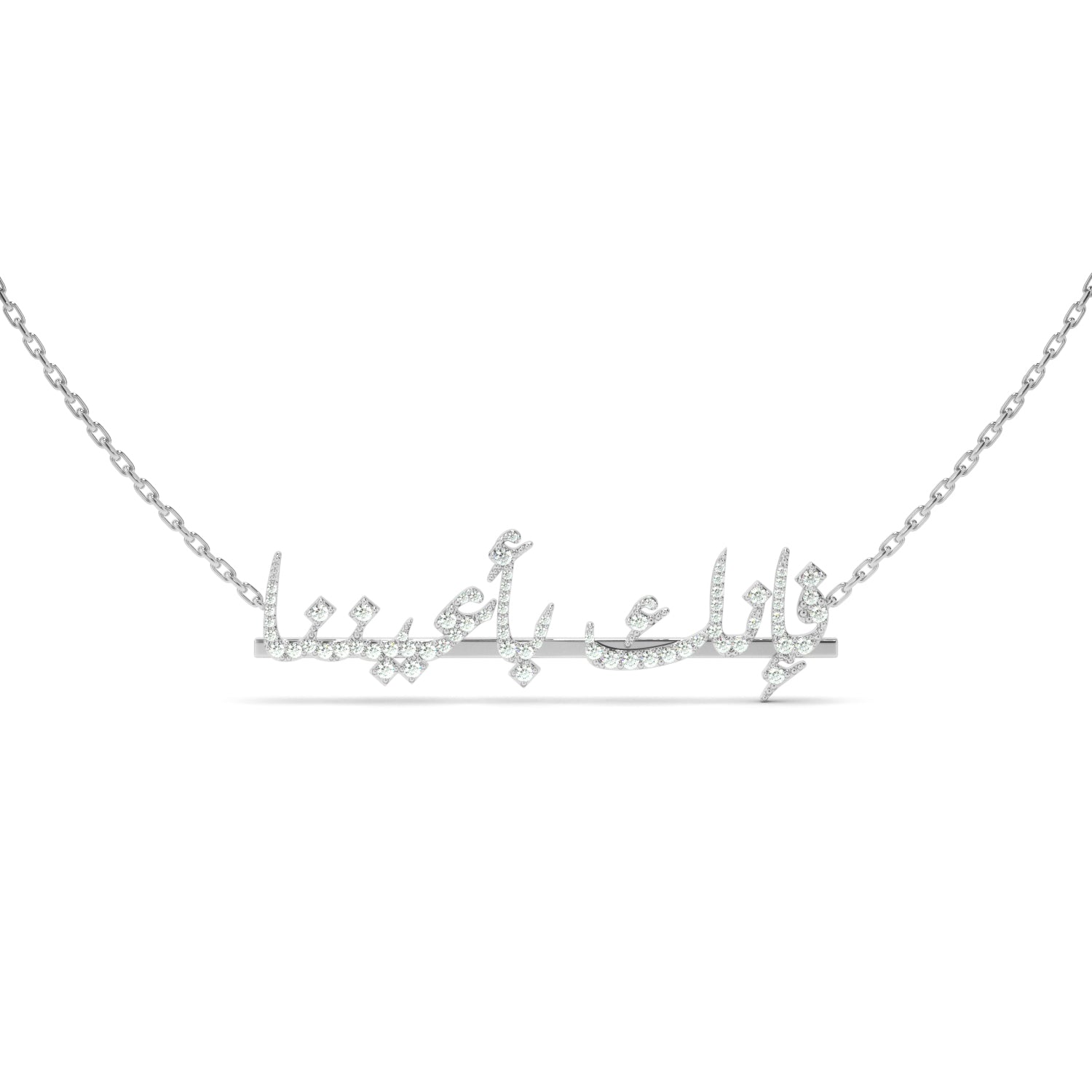 Description: Pavé Diamond Arabic Quranic Verse necklace.