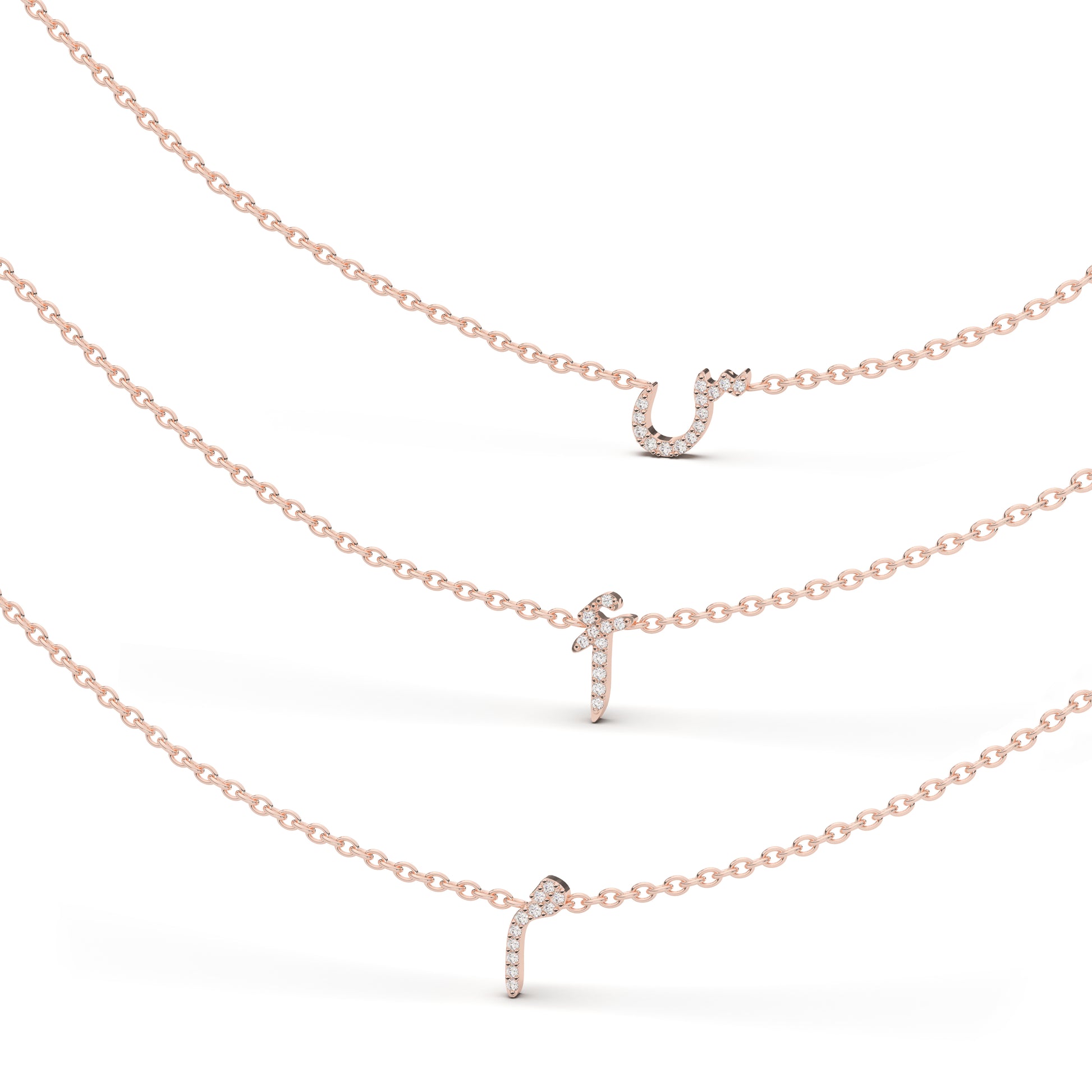 "Abjad Hawaz" Letter necklace allows you to wear yours or your loved ones' Arabic alphabet paved with diamonds, designed ever-so-intricately for every day wear.