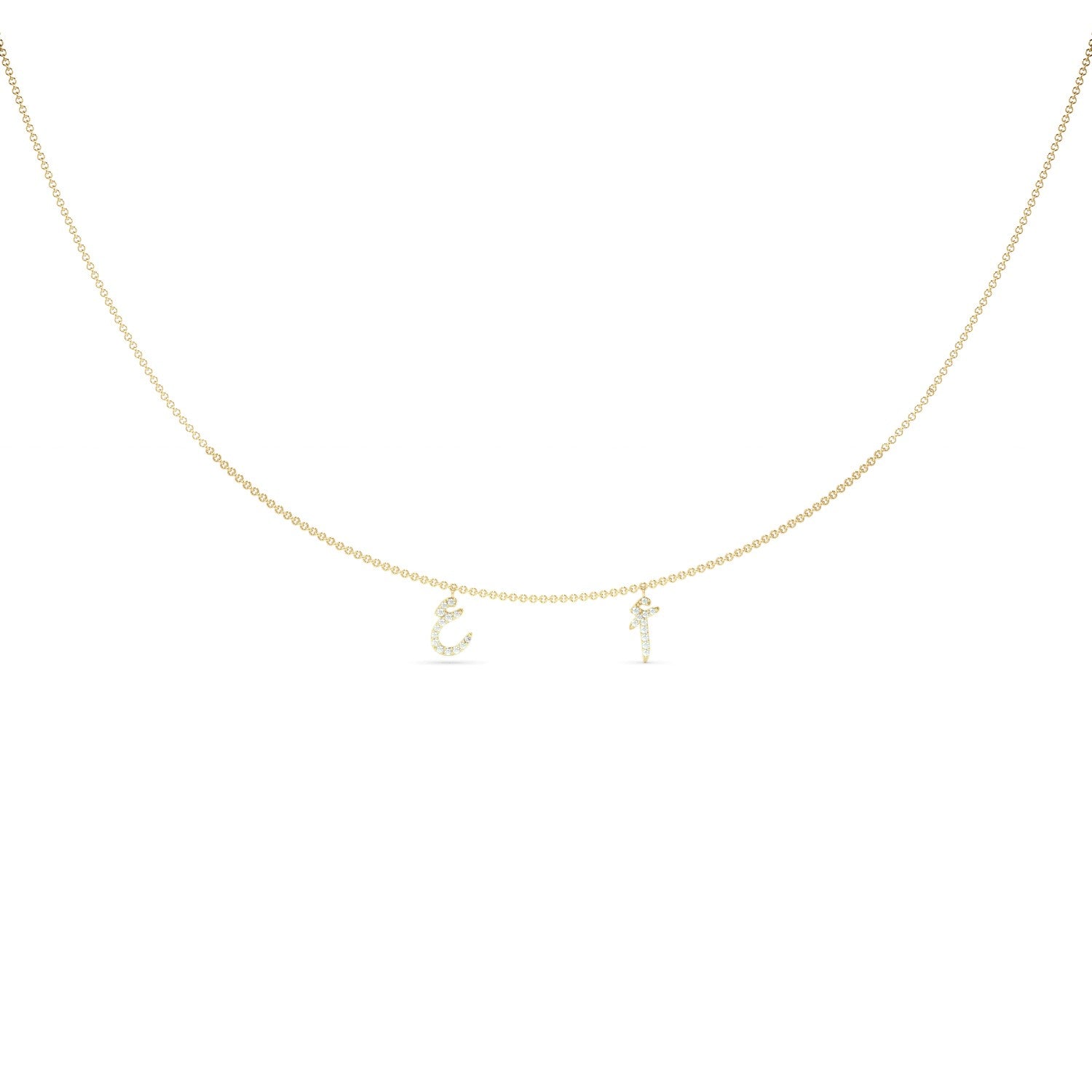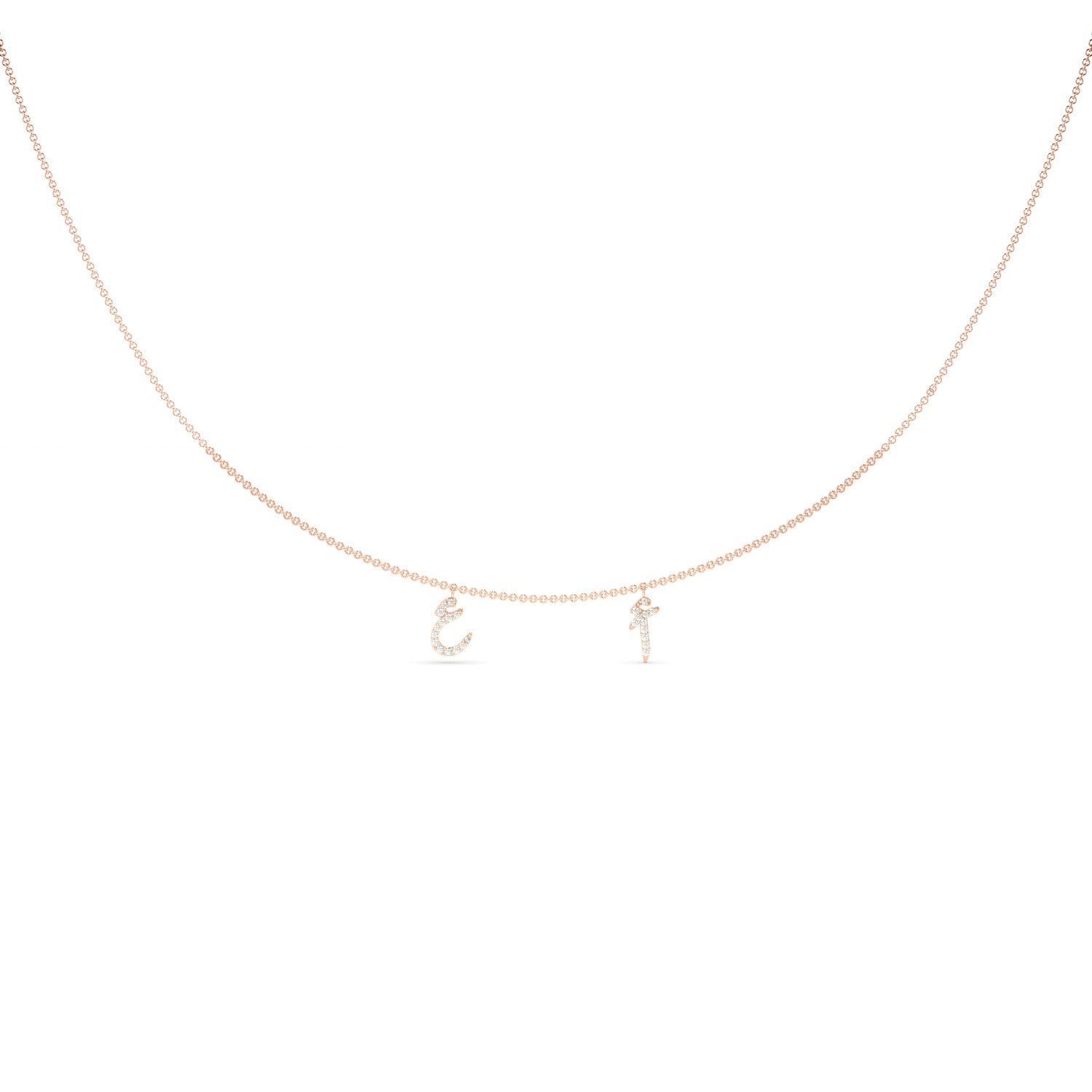 "Abjad Hawaz" 2-letter necklace allows you to wear yours and your loved ones' Arabic alphabets paved with diamonds, designed ever-so-intricately for every day wear.