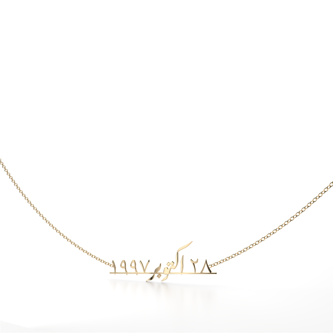Design yours or your loved ones' favorite date in our Arabic-Indian numerals gathered on a line made out of gold from our Numra Satter collection.